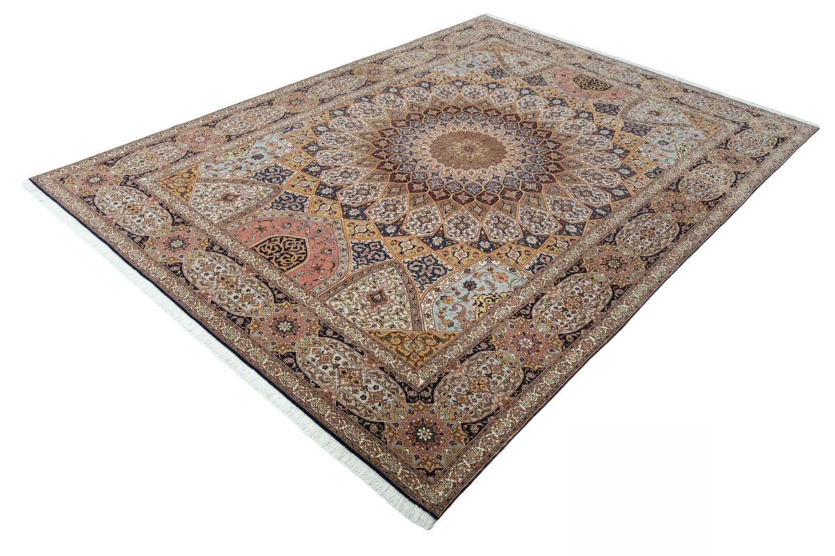 Der klassische Täbriz-Perserteppich zählt aufgrund seiner ausgezeichneten Knüpf- und Materialqualitäten sowie der einprägsamen Musterdesigns zu den begehrtesten Manufakturteppichen weltweit. Echte, handgeknüpfte Täbriz-Teppiche stammen aus der gleichnamigen Hauptstadt Ost-Aserbaidschans, einer nordiranischen Kulturmetropole und geschichtsträchtigen Stadt, die bereits im 16. Jahrhundert zu den führenden Zentren der Perserteppich-Produktion gehörte.