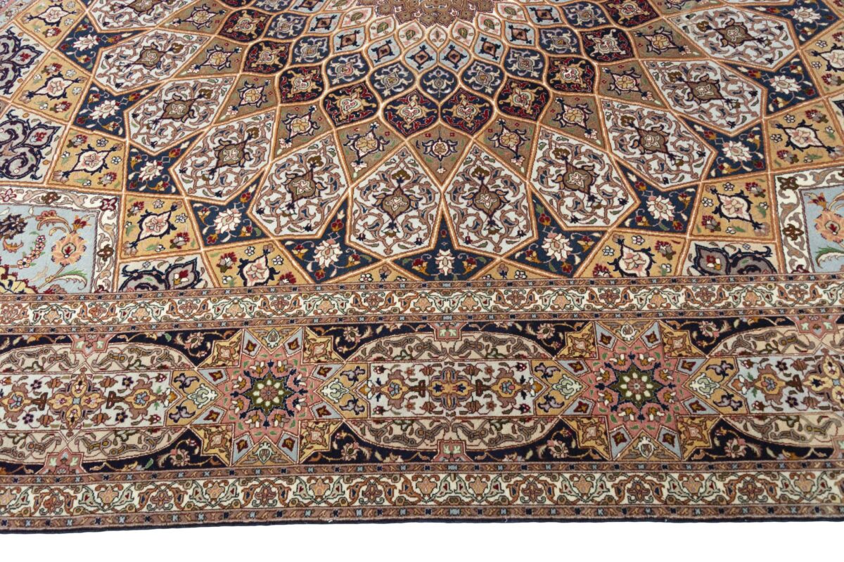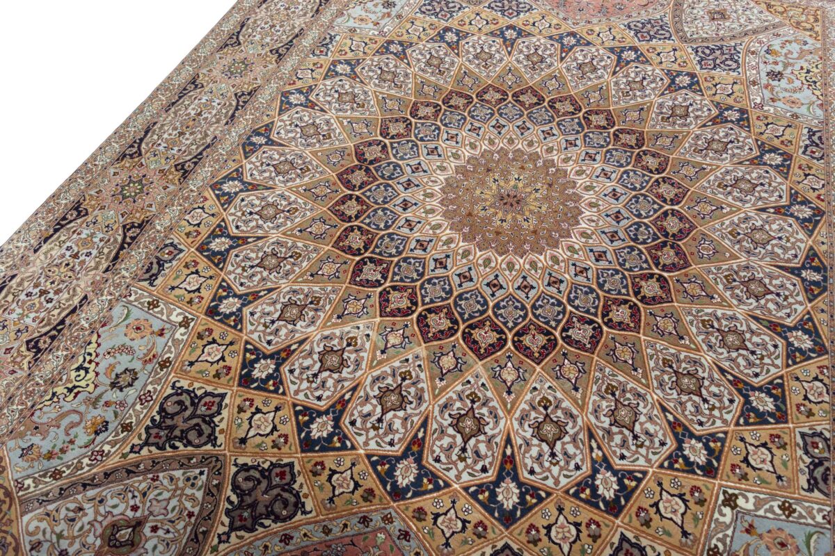Auch mit seiner prachtvollen Ornamentik wird der Perserteppich höchsten Ansprüchen gerecht: ob traditionelles Mahi-Motiv mit Medaillon, klassische florale Muster, fantasievolle Bilderwelt oder Allover-Muster im Rapport – jedes Design von Täbriz-Teppichen bietet ein herrliches Erscheinungsbild, fördert stilvolles Ambiente und verleiht dem edlen Perserteppich das Potenzial, zu einem hochgeschätzten Sammlerstück zu werden.