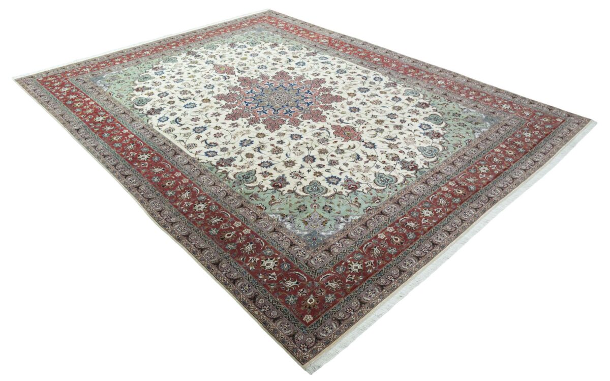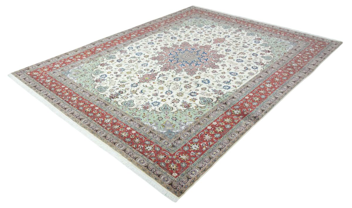 Auch mit seiner prachtvollen Ornamentik wird der Perserteppich höchsten Ansprüchen gerecht: ob traditionelles Mahi-Motiv mit Medaillon, klassische florale Muster, fantasievolle Bilderwelt oder Allover-Muster im Rapport – jedes Design von Täbriz-Teppichen bietet ein herrliches Erscheinungsbild, fördert stilvolles Ambiente und verleiht dem edlen Perserteppich das Potenzial, zu einem hochgeschätzten Sammlerstück zu werden.