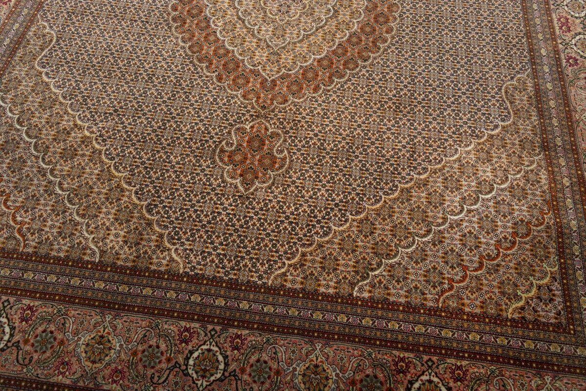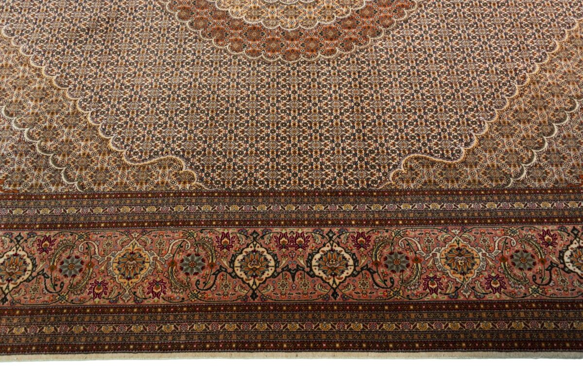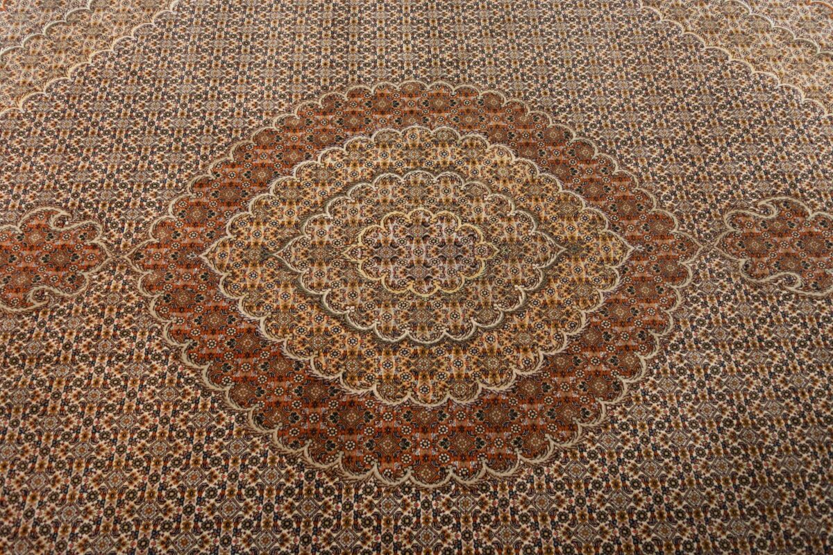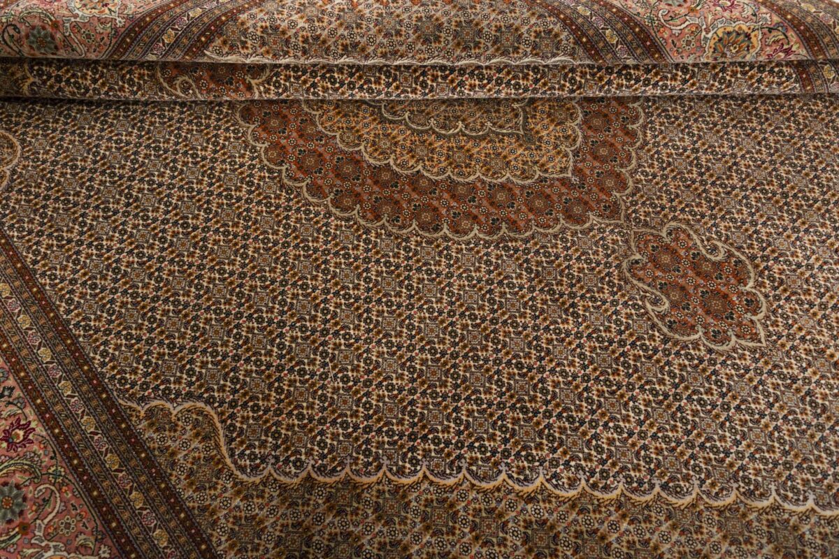 Auch mit seiner prachtvollen Ornamentik wird der Perserteppich höchsten Ansprüchen gerecht: ob traditionelles Mahi-Motiv mit Medaillon, klassische florale Muster, fantasievolle Bilderwelt oder Allover-Muster im Rapport – jedes Design von Täbriz-Teppichen bietet ein herrliches Erscheinungsbild, fördert stilvolles Ambiente und verleiht dem edlen Perserteppich das Potenzial, zu einem hochgeschätzten Sammlerstück zu werden.