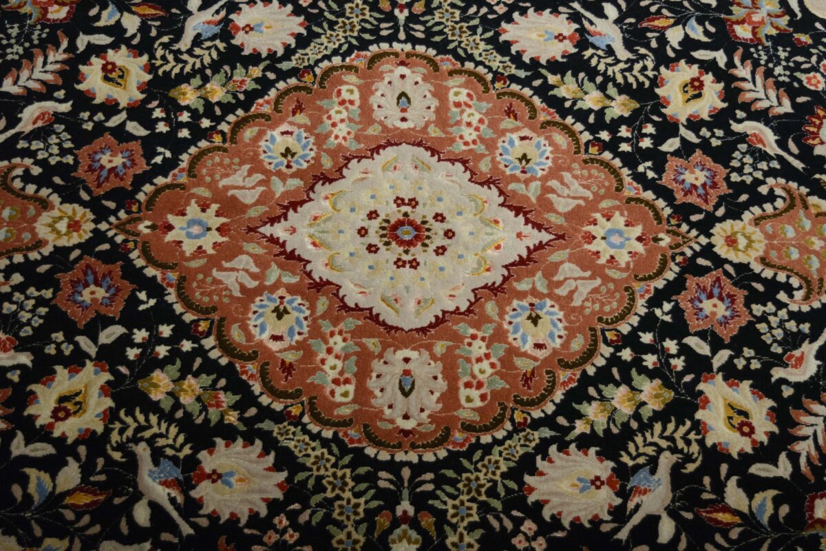 Auch mit seiner prachtvollen Ornamentik wird der Perserteppich höchsten Ansprüchen gerecht: ob traditionelles Mahi-Motiv mit Medaillon, klassische florale Muster, fantasievolle Bilderwelt oder Allover-Muster im Rapport – jedes Design von Täbriz-Teppichen bietet ein herrliches Erscheinungsbild, fördert stilvolles Ambiente und verleiht dem edlen Perserteppich das Potenzial, zu einem hochgeschätzten Sammlerstück zu werden.