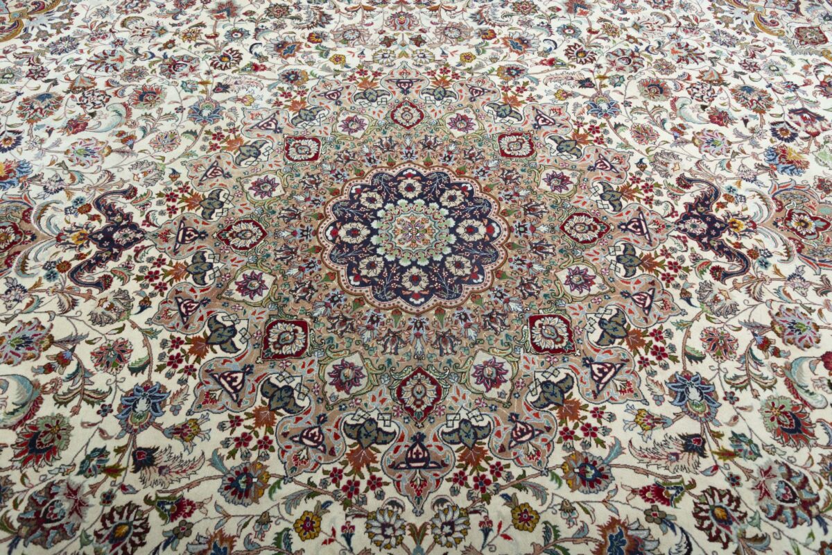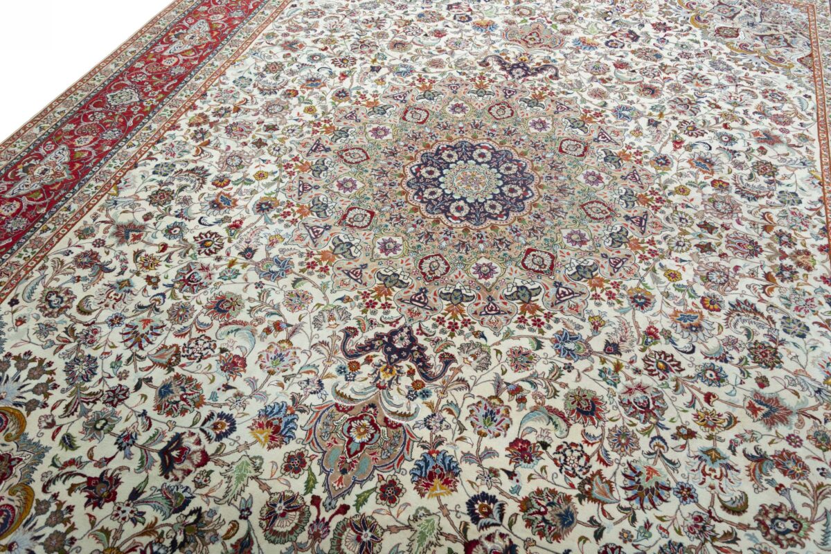 Auch mit seiner prachtvollen Ornamentik wird der Perserteppich höchsten Ansprüchen gerecht: ob traditionelles Mahi-Motiv mit Medaillon, klassische florale Muster, fantasievolle Bilderwelt oder Allover-Muster im Rapport – jedes Design von Täbriz-Teppichen bietet ein herrliches Erscheinungsbild, fördert stilvolles Ambiente und verleiht dem edlen Perserteppich das Potenzial, zu einem hochgeschätzten Sammlerstück zu werden.