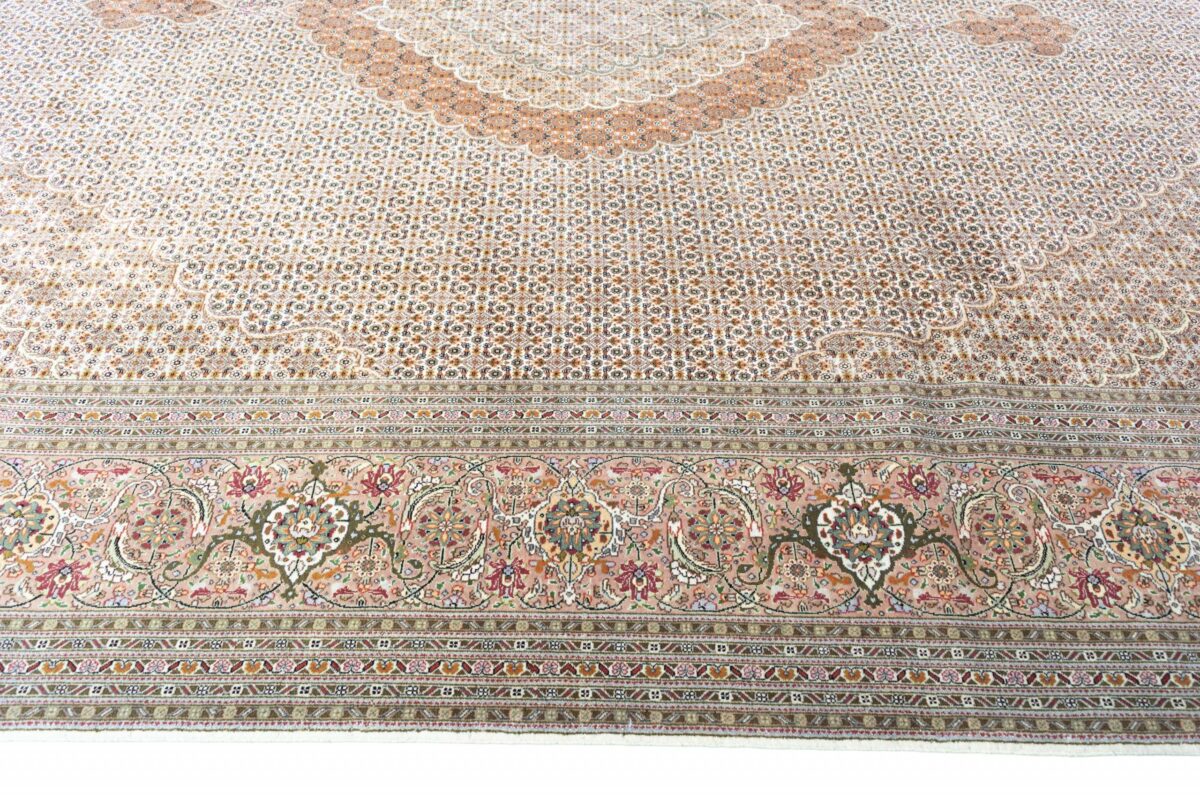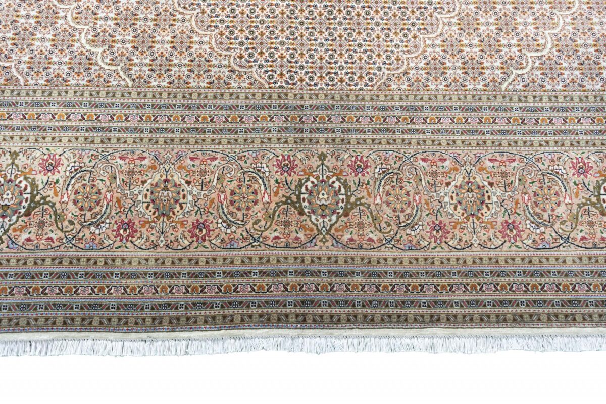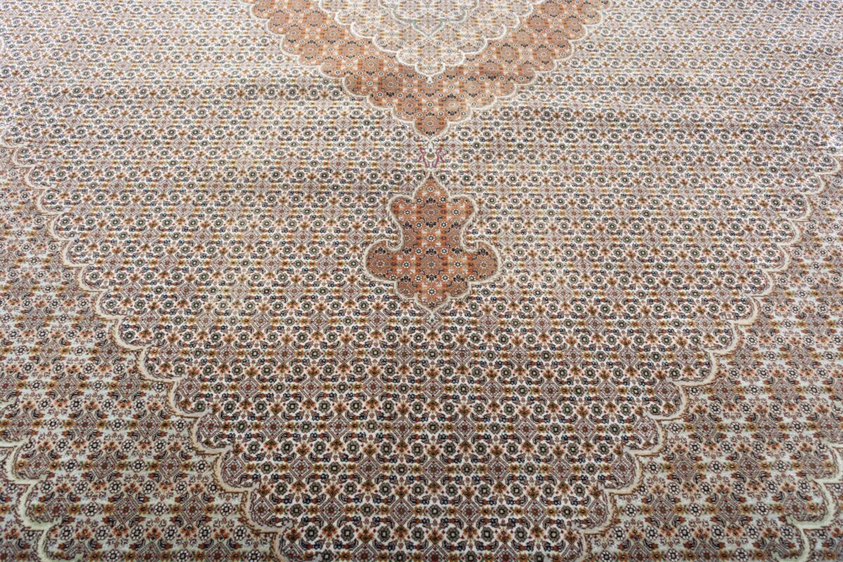 Auch mit seiner prachtvollen Ornamentik wird der Perserteppich höchsten Ansprüchen gerecht: ob traditionelles Mahi-Motiv mit Medaillon, klassische florale Muster, fantasievolle Bilderwelt oder Allover-Muster im Rapport – jedes Design von Täbriz-Teppichen bietet ein herrliches Erscheinungsbild, fördert stilvolles Ambiente und verleiht dem edlen Perserteppich das Potenzial, zu einem hochgeschätzten Sammlerstück zu werden.