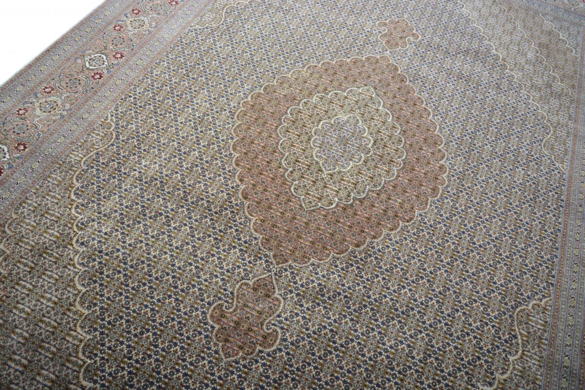 Auch mit seiner prachtvollen Ornamentik wird der Perserteppich höchsten Ansprüchen gerecht: ob traditionelles Mahi-Motiv mit Medaillon, klassische florale Muster, fantasievolle Bilderwelt oder Allover-Muster im Rapport – jedes Design von Täbriz-Teppichen bietet ein herrliches Erscheinungsbild, fördert stilvolles Ambiente und verleiht dem edlen Perserteppich das Potenzial, zu einem hochgeschätzten Sammlerstück zu werden.