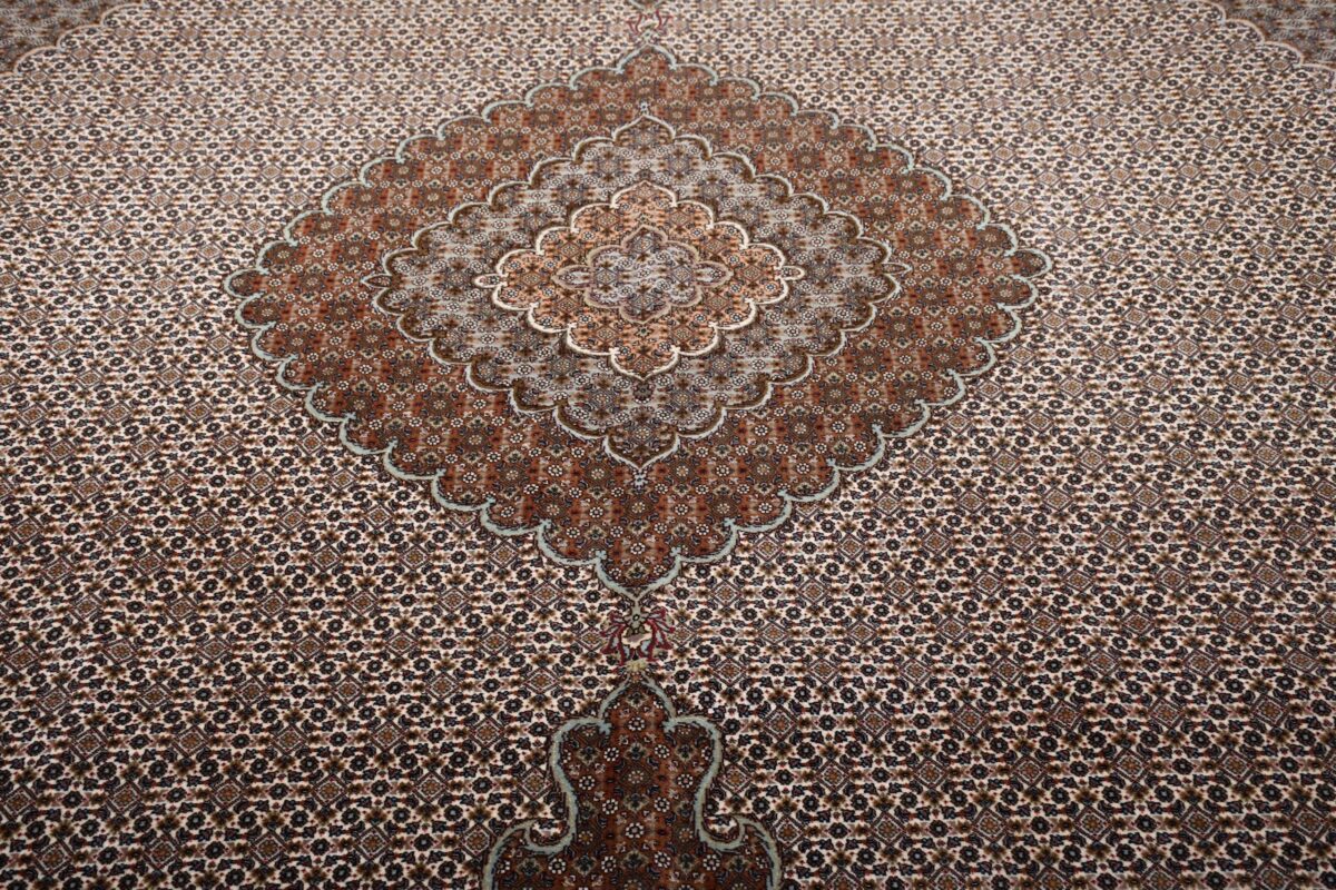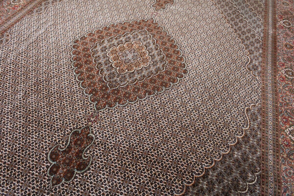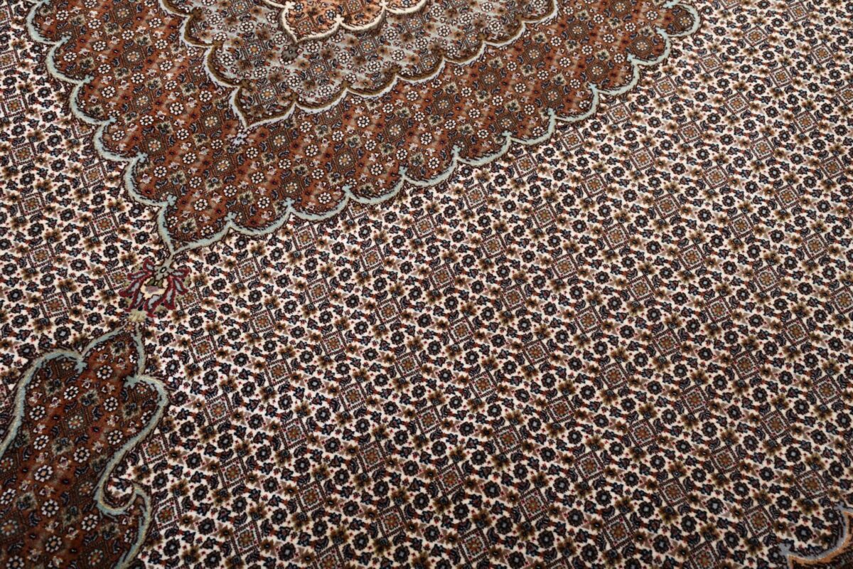 Auch mit seiner prachtvollen Ornamentik wird der Perserteppich höchsten Ansprüchen gerecht: ob traditionelles Mahi-Motiv mit Medaillon, klassische florale Muster, fantasievolle Bilderwelt oder Allover-Muster im Rapport – jedes Design von Täbriz-Teppichen bietet ein herrliches Erscheinungsbild, fördert stilvolles Ambiente und verleiht dem edlen Perserteppich das Potenzial, zu einem hochgeschätzten Sammlerstück zu werden.