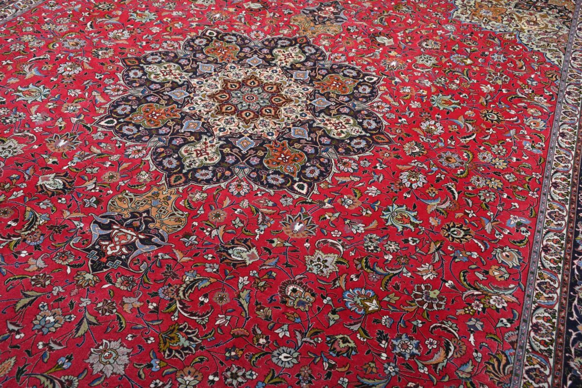 Auch mit seiner prachtvollen Ornamentik wird der Perserteppich höchsten Ansprüchen gerecht: ob traditionelles Mahi-Motiv mit Medaillon, klassische florale Muster, fantasievolle Bilderwelt oder Allover-Muster im Rapport – jedes Design von Täbriz-Teppichen bietet ein herrliches Erscheinungsbild, fördert stilvolles Ambiente und verleiht dem edlen Perserteppich das Potenzial, zu einem hochgeschätzten Sammlerstück zu werden.