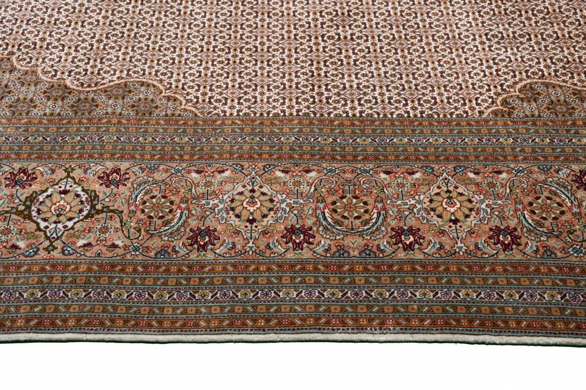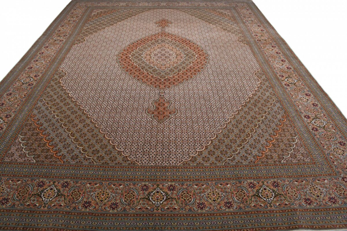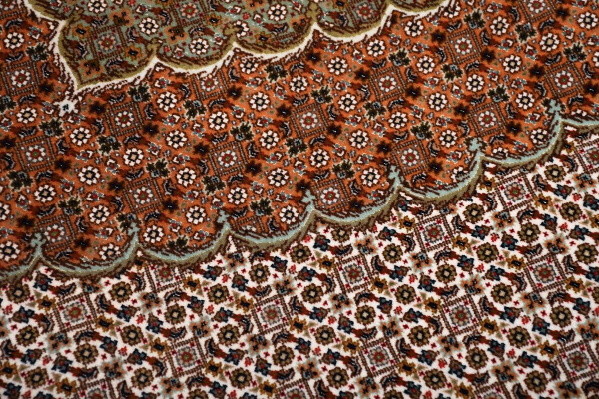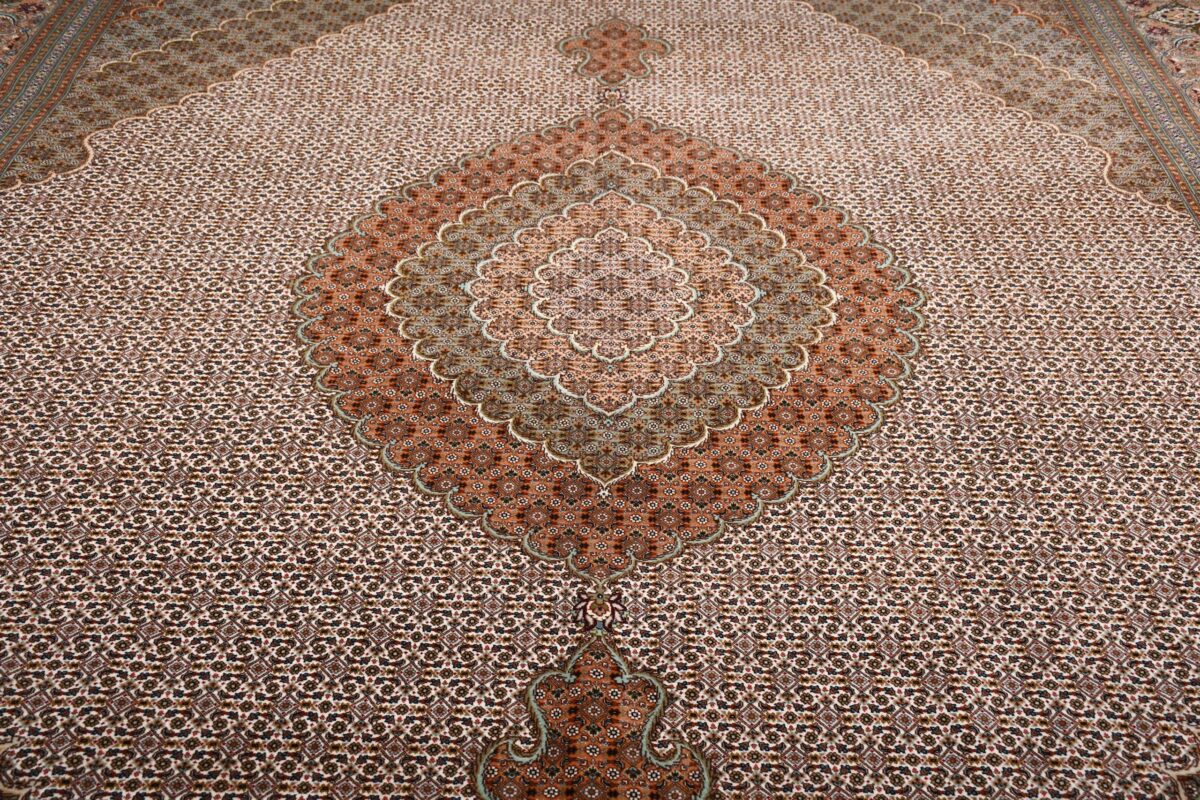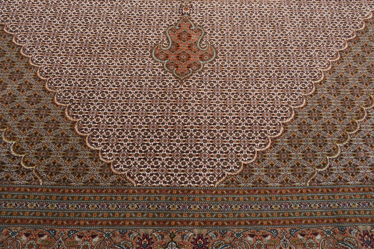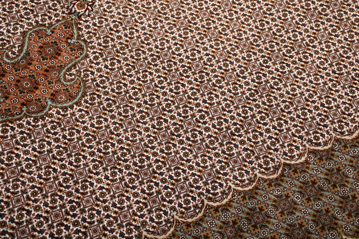 Auch mit seiner prachtvollen Ornamentik wird der Perserteppich höchsten Ansprüchen gerecht: ob traditionelles Mahi-Motiv mit Medaillon, klassische florale Muster, fantasievolle Bilderwelt oder Allover-Muster im Rapport – jedes Design von Täbriz-Teppichen bietet ein herrliches Erscheinungsbild, fördert stilvolles Ambiente und verleiht dem edlen Perserteppich das Potenzial, zu einem hochgeschätzten Sammlerstück zu werden.