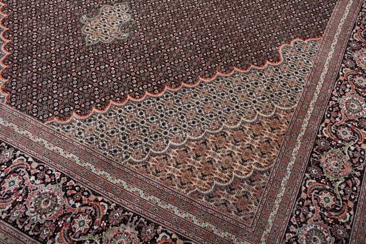 Auch mit seiner prachtvollen Ornamentik wird der Perserteppich höchsten Ansprüchen gerecht: ob traditionelles Mahi-Motiv mit Medaillon, klassische florale Muster, fantasievolle Bilderwelt oder Allover-Muster im Rapport – jedes Design von Täbriz-Teppichen bietet ein herrliches Erscheinungsbild, fördert stilvolles Ambiente und verleiht dem edlen Perserteppich das Potenzial, zu einem hochgeschätzten Sammlerstück zu werden.