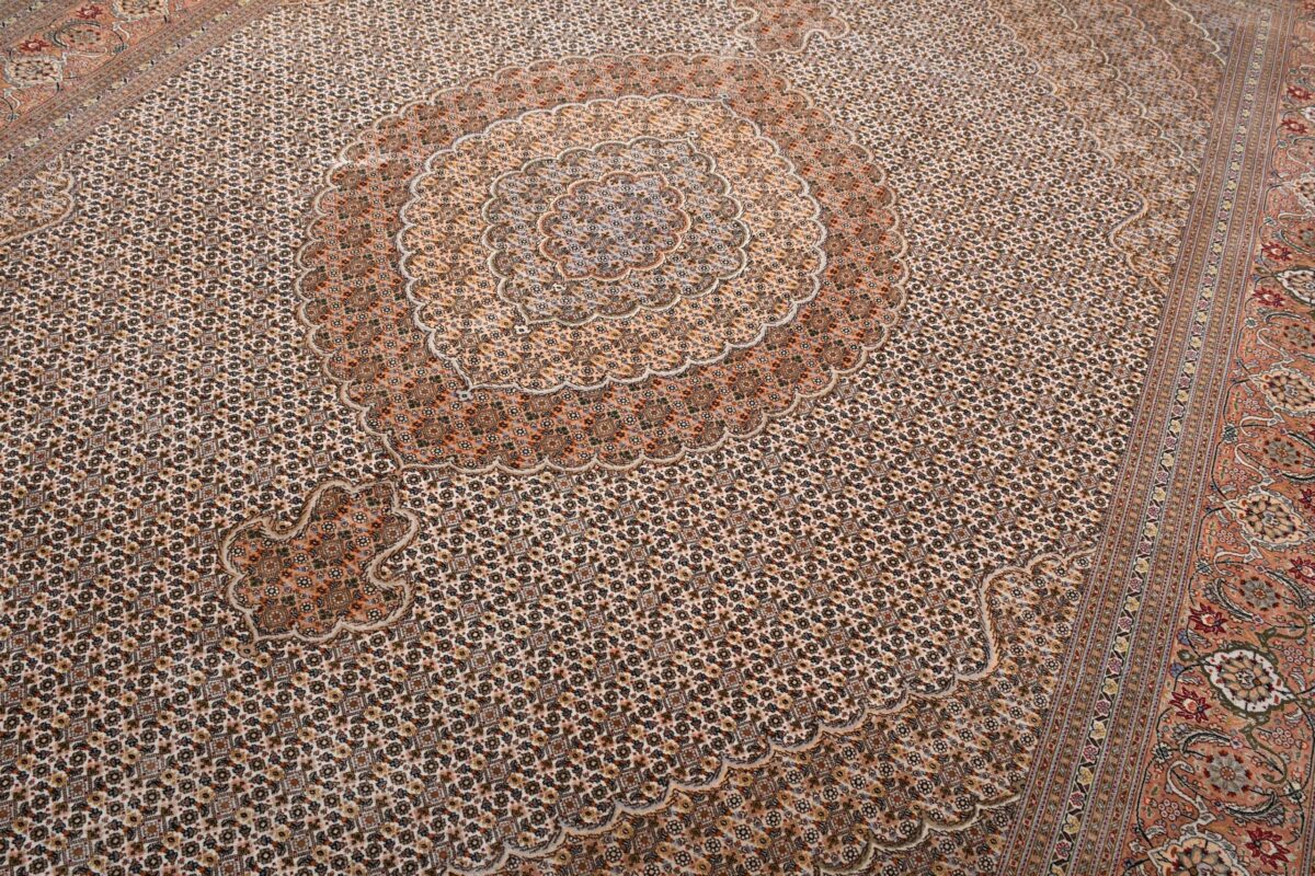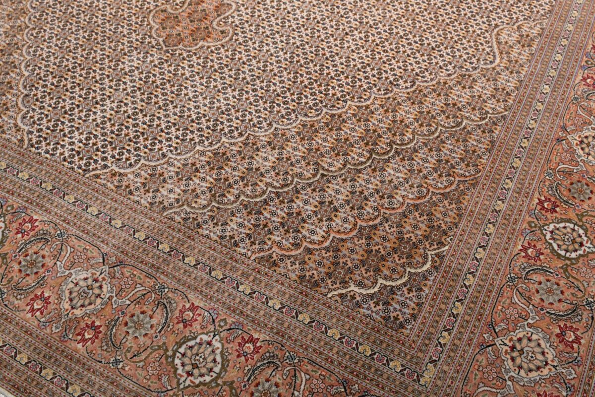 Auch mit seiner prachtvollen Ornamentik wird der Perserteppich höchsten Ansprüchen gerecht: ob traditionelles Mahi-Motiv mit Medaillon, klassische florale Muster, fantasievolle Bilderwelt oder Allover-Muster im Rapport – jedes Design von Täbriz-Teppichen bietet ein herrliches Erscheinungsbild, fördert stilvolles Ambiente und verleiht dem edlen Perserteppich das Potenzial, zu einem hochgeschätzten Sammlerstück zu werden.