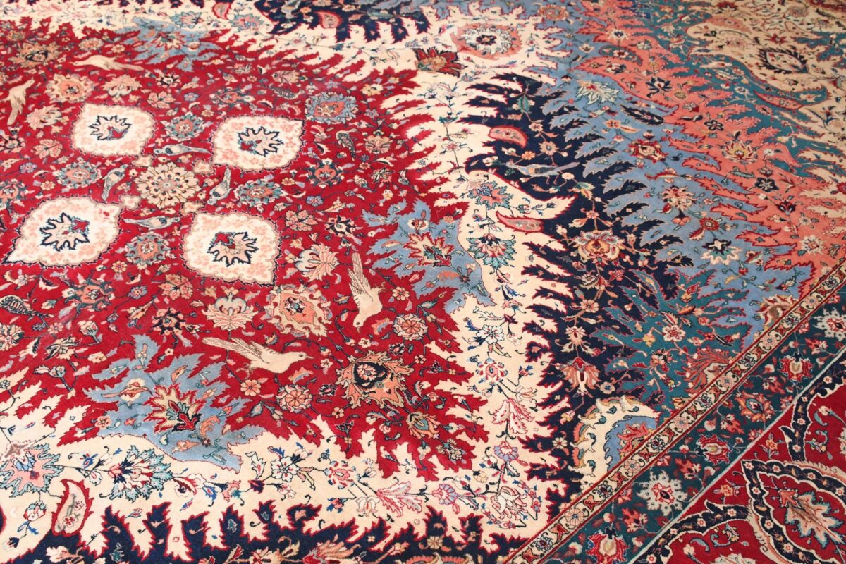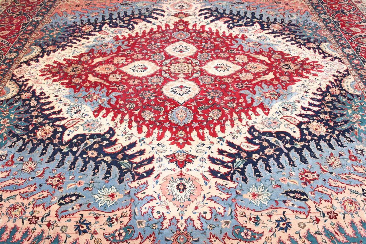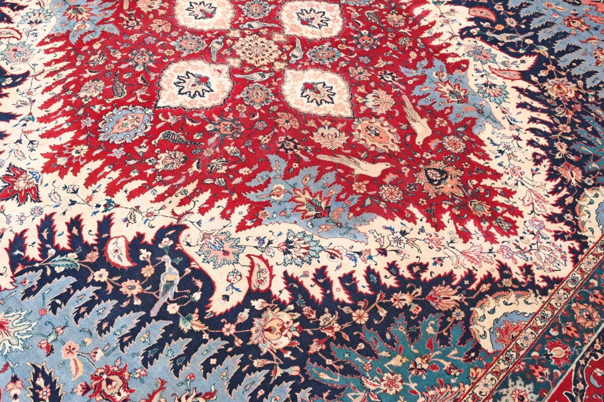 Auch mit seiner prachtvollen Ornamentik wird der Perserteppich höchsten Ansprüchen gerecht: ob traditionelles Mahi-Motiv mit Medaillon, klassische florale Muster, fantasievolle Bilderwelt oder Allover-Muster im Rapport – jedes Design von Täbriz-Teppichen bietet ein herrliches Erscheinungsbild, fördert stilvolles Ambiente und verleiht dem edlen Perserteppich das Potenzial, zu einem hochgeschätzten Sammlerstück zu werden.