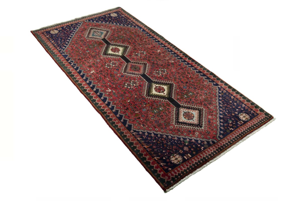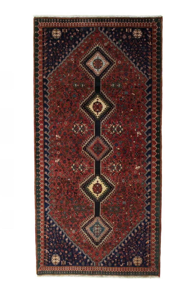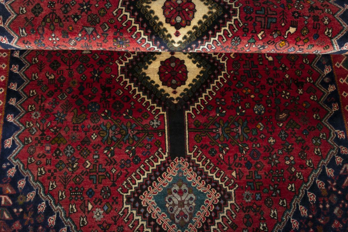 Ein traditioneller Yalameh-Teppich erstrahlt in kräftigen Rot- und Blautönen sowie Erdfarben und lässt sich leicht an seinem typischen Rauten-Muster erkennen. Als Basisstruktur findet sich häufig das mittige „She-hoze“-Motiv mit mehreren, in einer Linie angeordneten Rauten. Beliebt ist auch die Anordnung zahlreicher Yalameh-Rauten in einem Raster aus Quadraten. Achten Sie auch auf die fantasievolle Füllung der Grundfelder: Die sehr hübsch stilisierten Tier- und Menschenfiguren, Sternsymbole und Rosetten bieten dem Betrachter ein wahres Genusserlebnis!