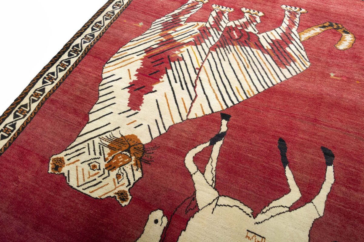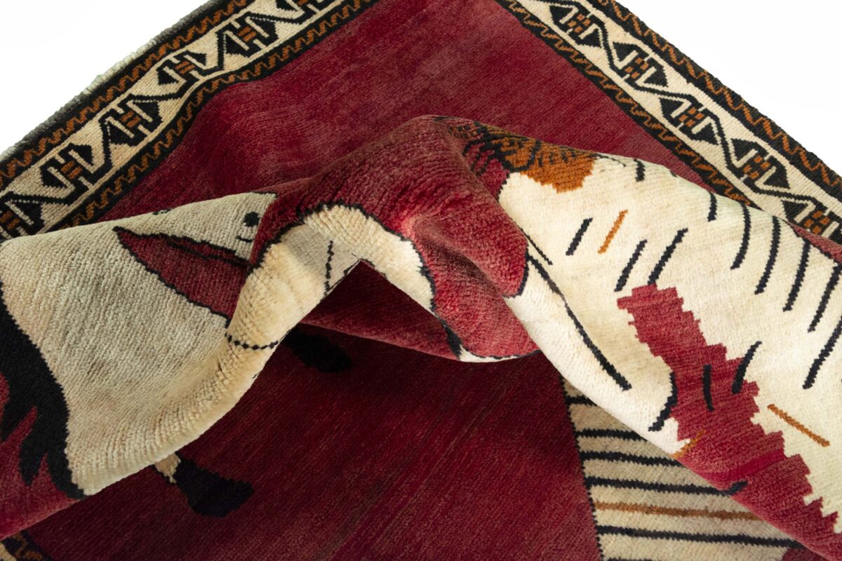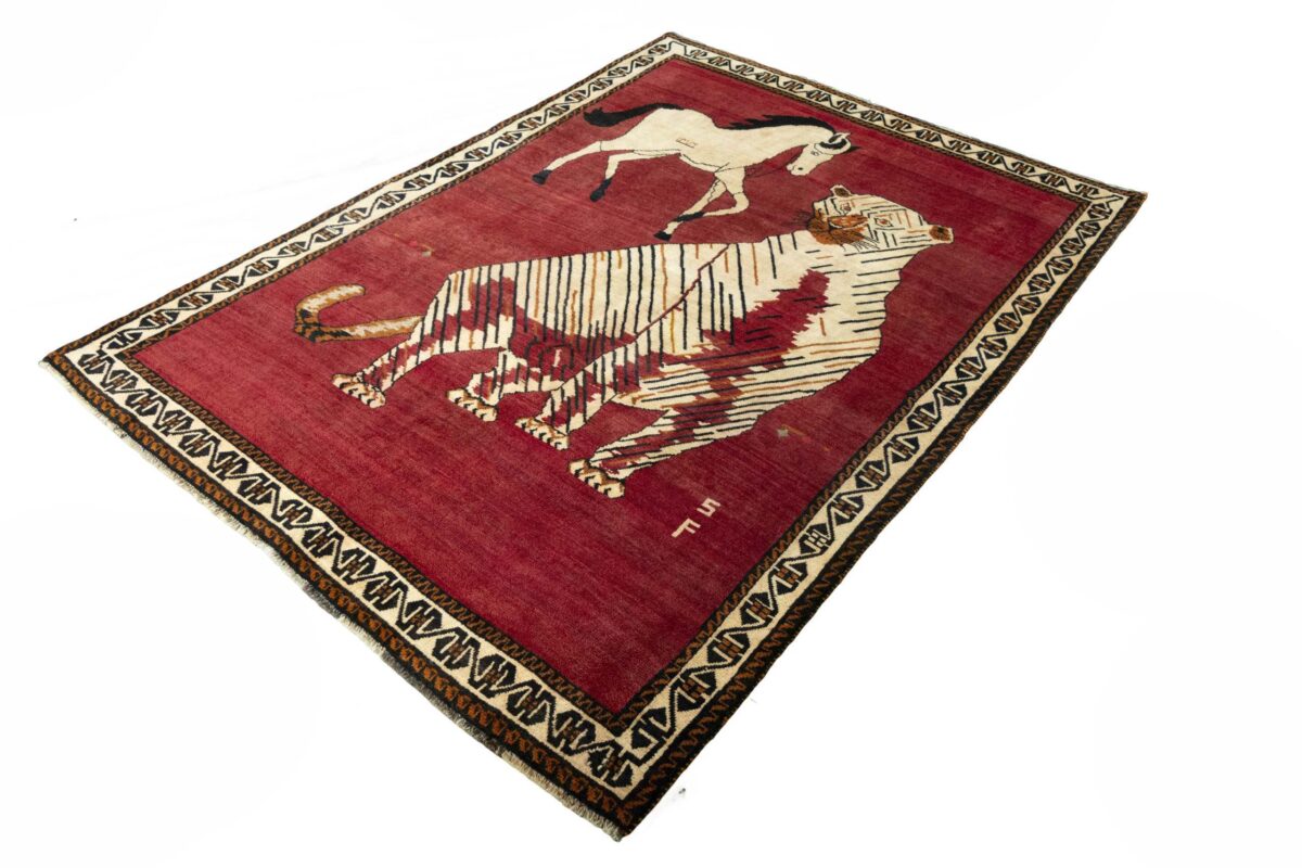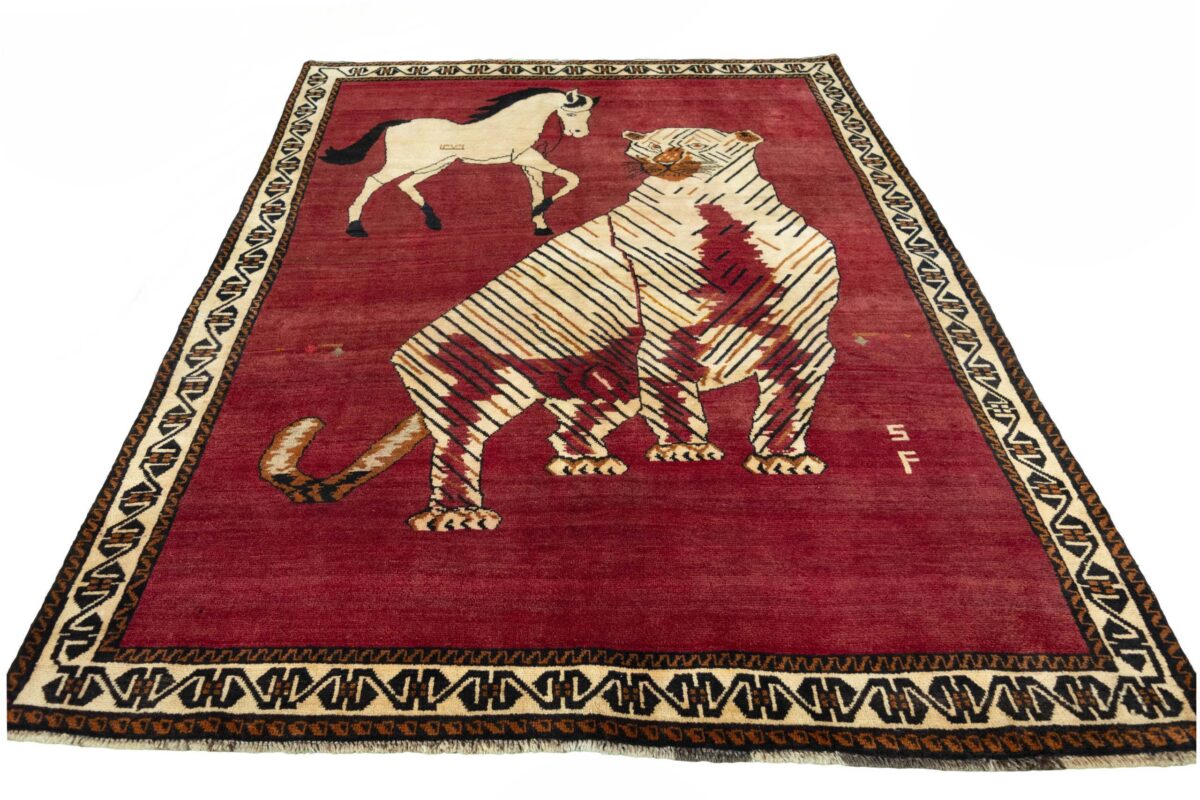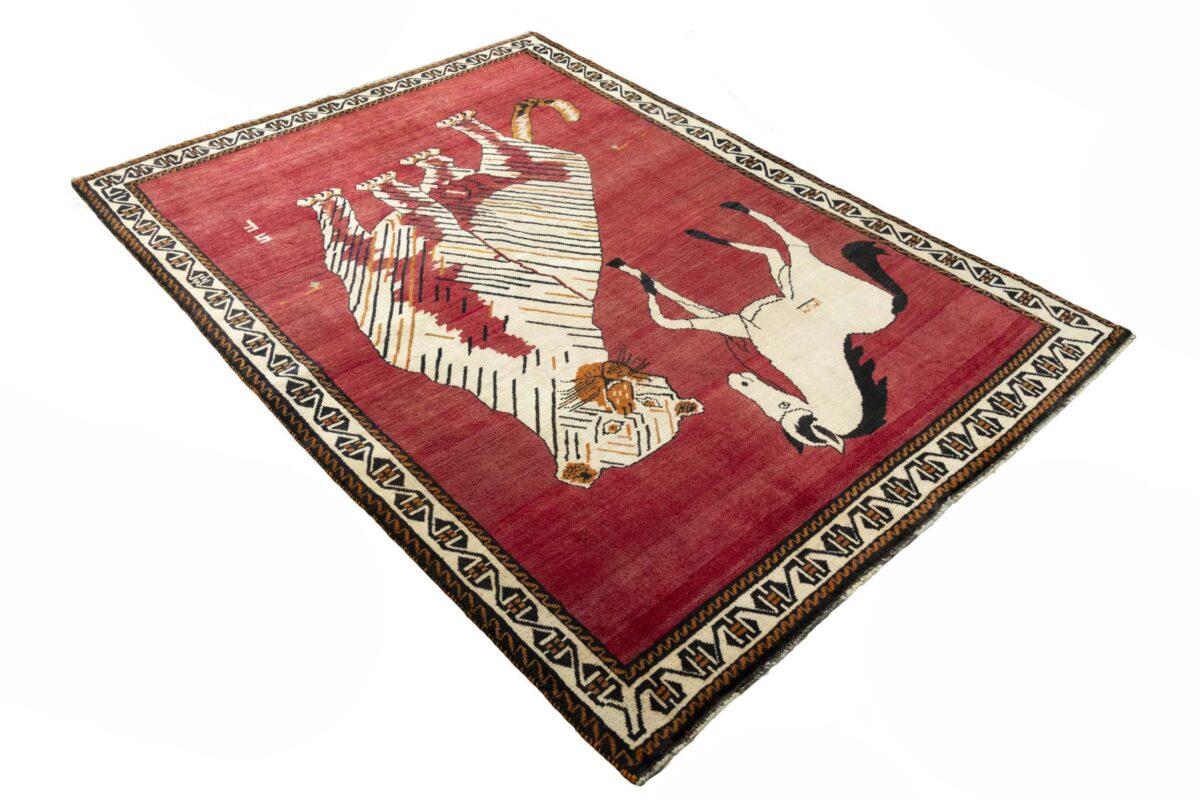 Ein traditioneller Yalameh-Teppich erstrahlt in kräftigen Rot- und Blautönen sowie Erdfarben und lässt sich leicht an seinem typischen Rauten-Muster erkennen. Als Basisstruktur findet sich häufig das mittige „She-hoze“-Motiv mit mehreren, in einer Linie angeordneten Rauten. Beliebt ist auch die Anordnung zahlreicher Yalameh-Rauten in einem Raster aus Quadraten. Achten Sie auch auf die fantasievolle Füllung der Grundfelder: Die sehr hübsch stilisierten Tier- und Menschenfiguren, Sternsymbole und Rosetten bieten dem Betrachter ein wahres Genusserlebnis!