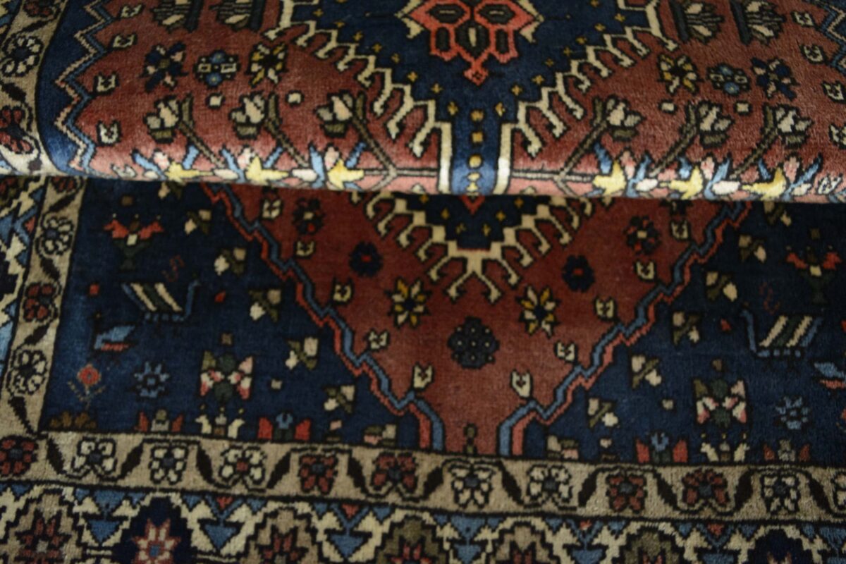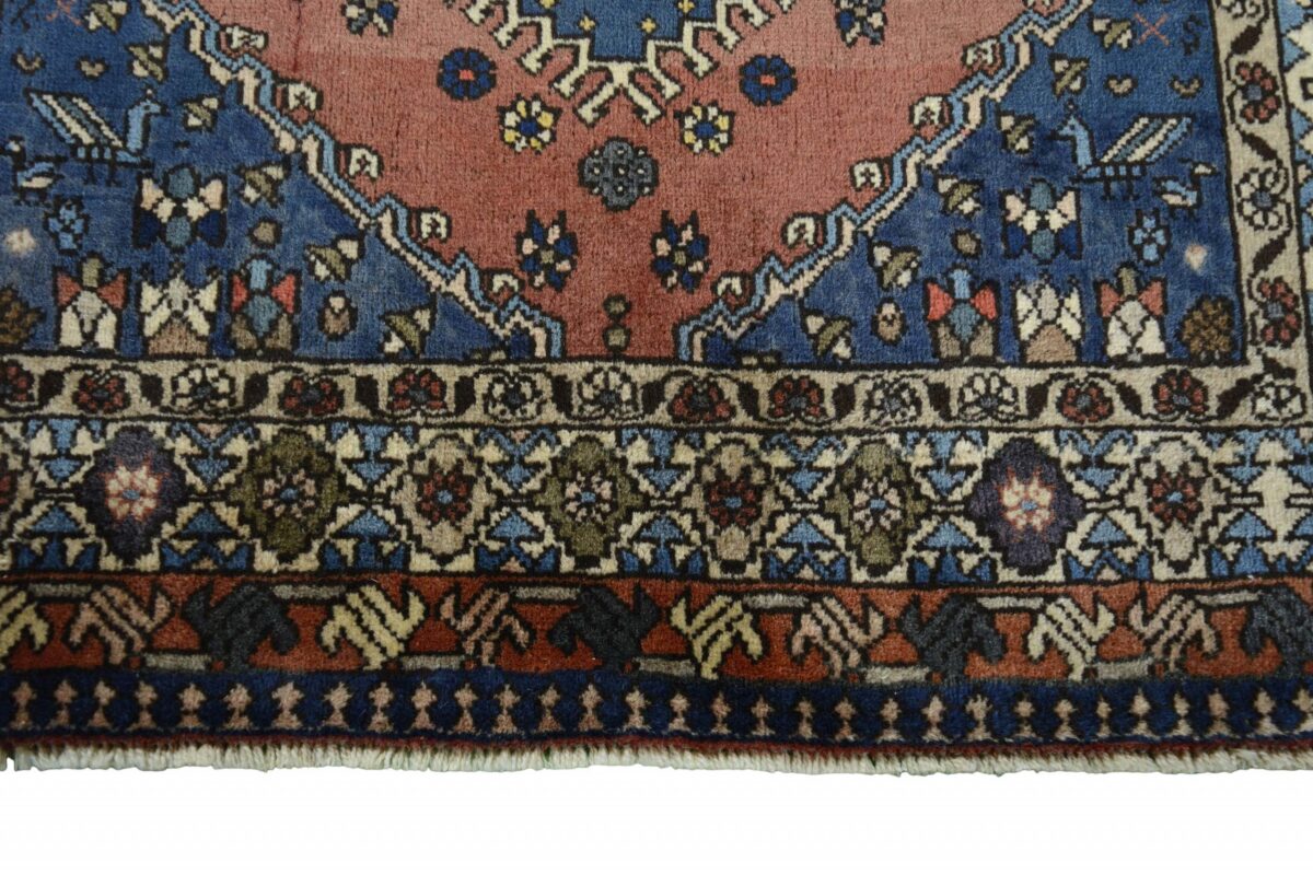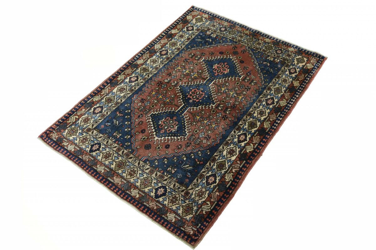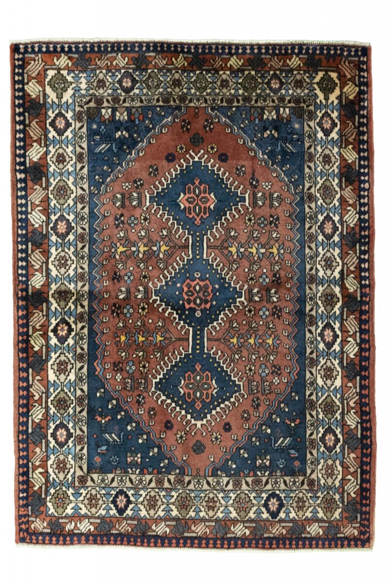 Ein traditioneller Yalameh-Teppich erstrahlt in kräftigen Rot- und Blautönen sowie Erdfarben und lässt sich leicht an seinem typischen Rauten-Muster erkennen. Als Basisstruktur findet sich häufig das mittige „She-hoze“-Motiv mit mehreren, in einer Linie angeordneten Rauten. Beliebt ist auch die Anordnung zahlreicher Yalameh-Rauten in einem Raster aus Quadraten. Achten Sie auch auf die fantasievolle Füllung der Grundfelder: Die sehr hübsch stilisierten Tier- und Menschenfiguren, Sternsymbole und Rosetten bieten dem Betrachter ein wahres Genusserlebnis!
