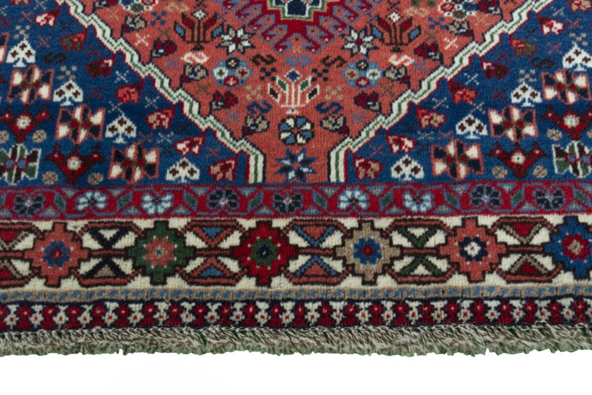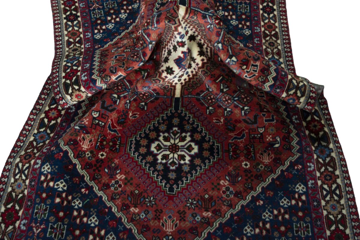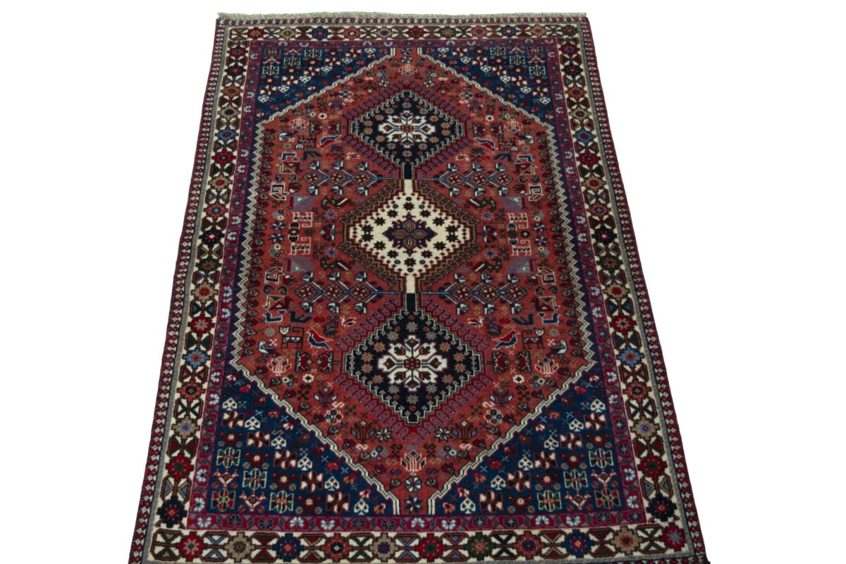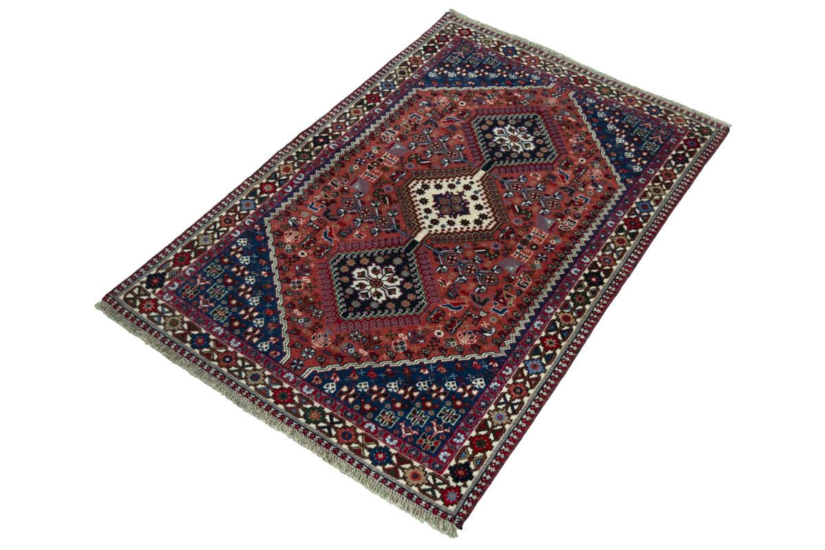 Ein traditioneller Yalameh-Teppich erstrahlt in kräftigen Rot- und Blautönen sowie Erdfarben und lässt sich leicht an seinem typischen Rauten-Muster erkennen. Als Basisstruktur findet sich häufig das mittige „She-hoze“-Motiv mit mehreren, in einer Linie angeordneten Rauten. Beliebt ist auch die Anordnung zahlreicher Yalameh-Rauten in einem Raster aus Quadraten. Achten Sie auch auf die fantasievolle Füllung der Grundfelder: Die sehr hübsch stilisierten Tier- und Menschenfiguren, Sternsymbole und Rosetten bieten dem Betrachter ein wahres Genusserlebnis!